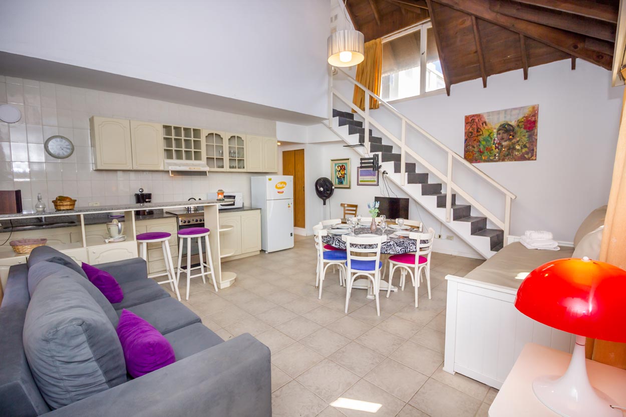 Ubicados en Primer Piso. Vista a la calle y lateral. En Planta Baja: Amplio living comedor con divan cama con carrito. Habitacion twin. Baño completo con bañera. En Planta Alta: Habitación matrimonial. Baño completo con bañera.